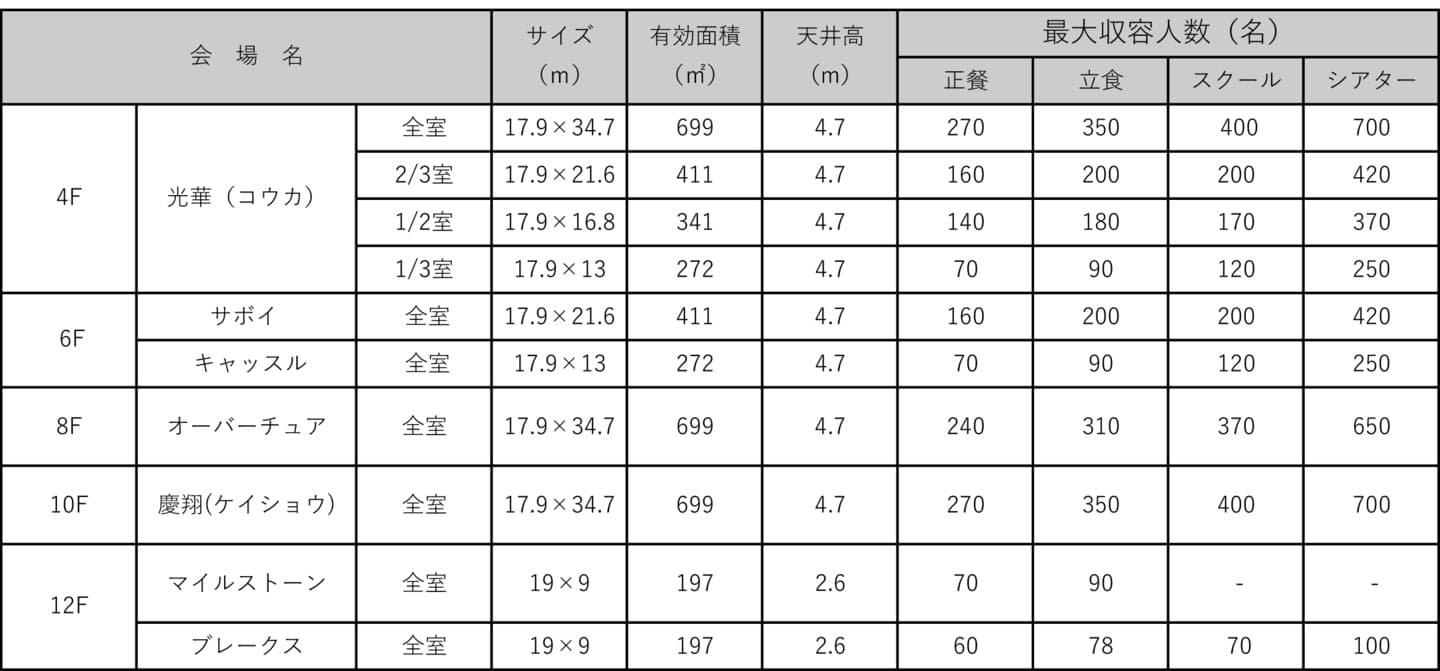 総会・講演会・パーティーなど中~大規模な催しに適しています